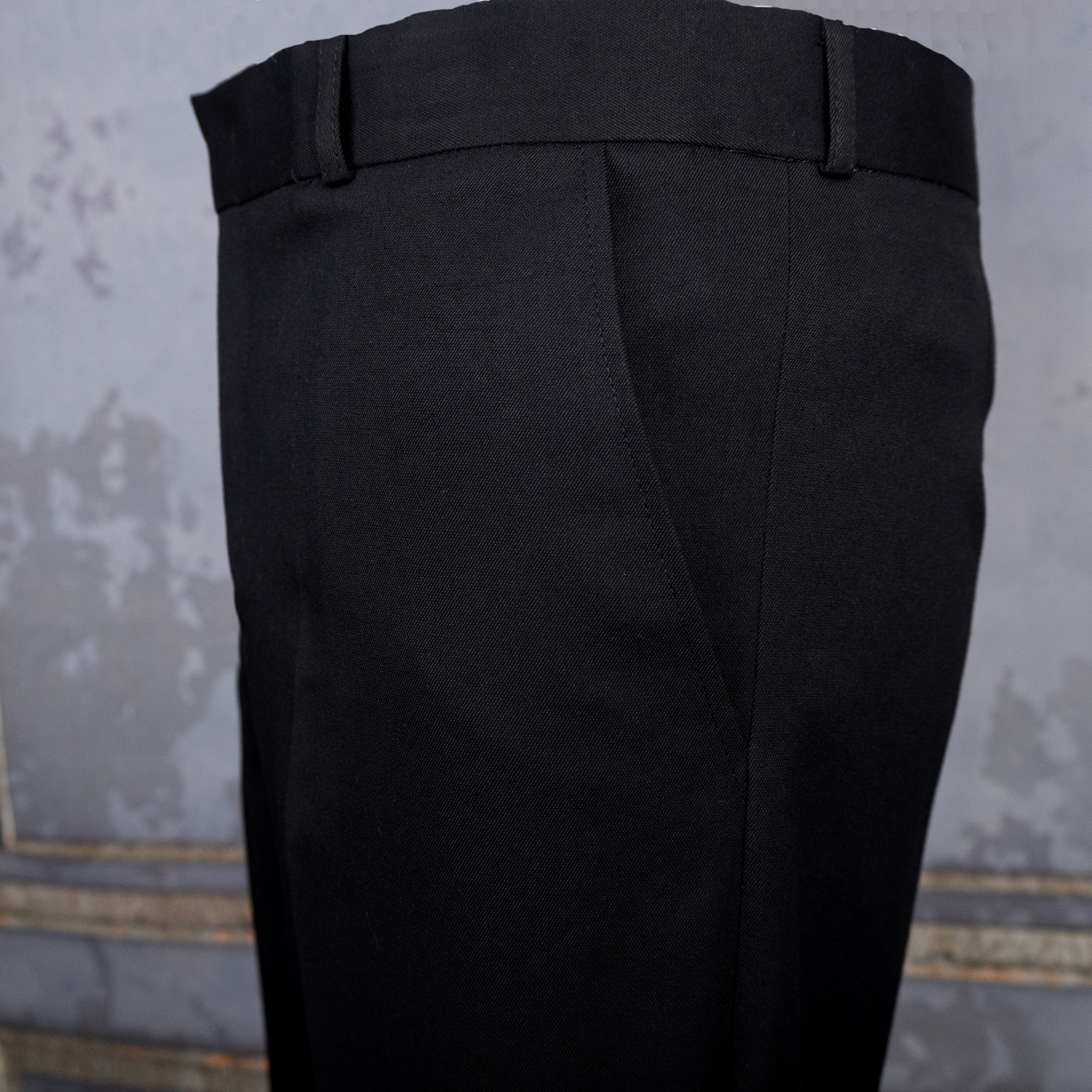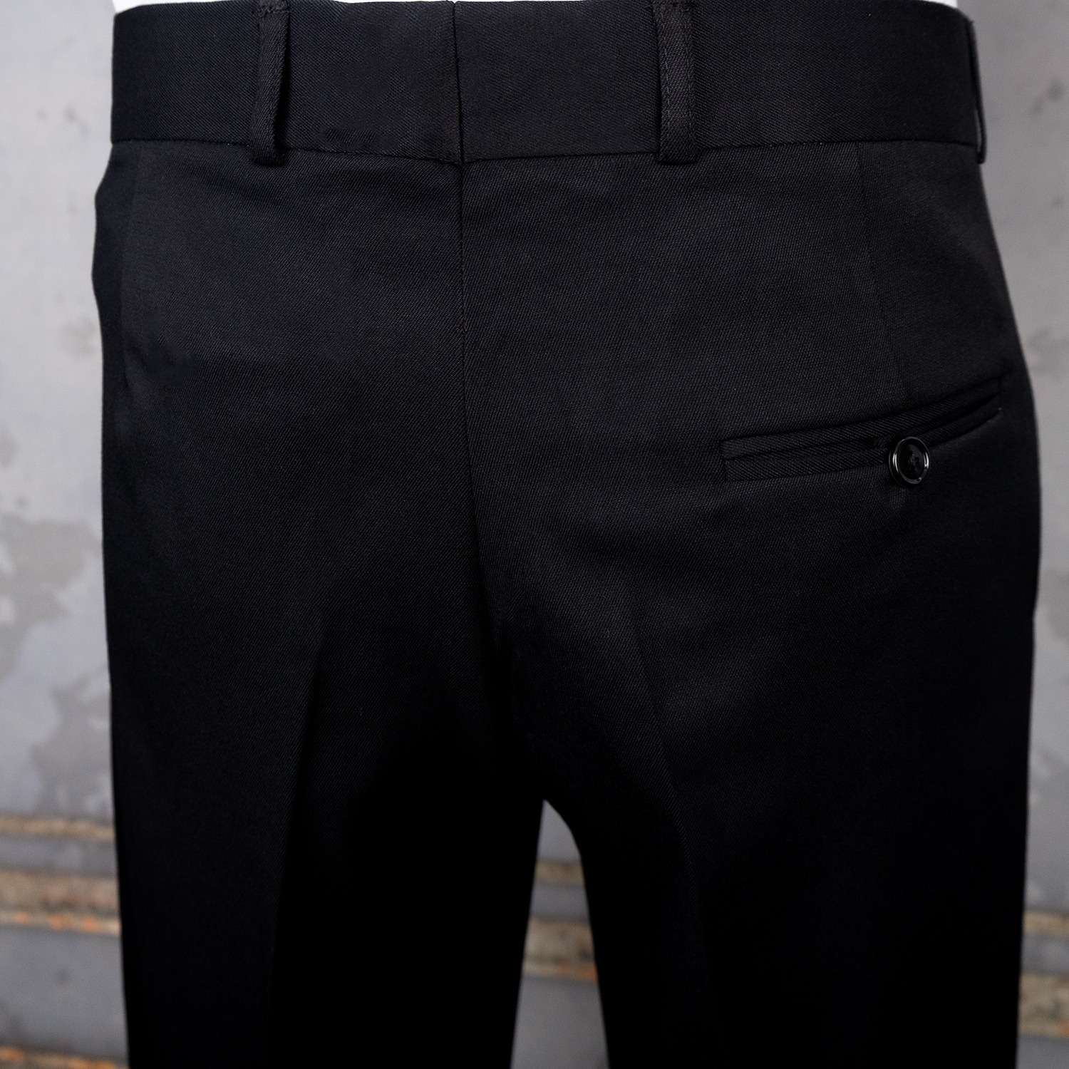 رنگ این شلوار مشکی پررنگ است و حالت بور یا کدر ندارد. این موضوع باعث میشود شلوار حتی بعد از استفاده، ظاهر شیک و رسمی خود را حفظ کند و بهراحتی با کتهای مشکی، طوسی، سرمهای یا حتی رنگهای روشنتر ست شود.