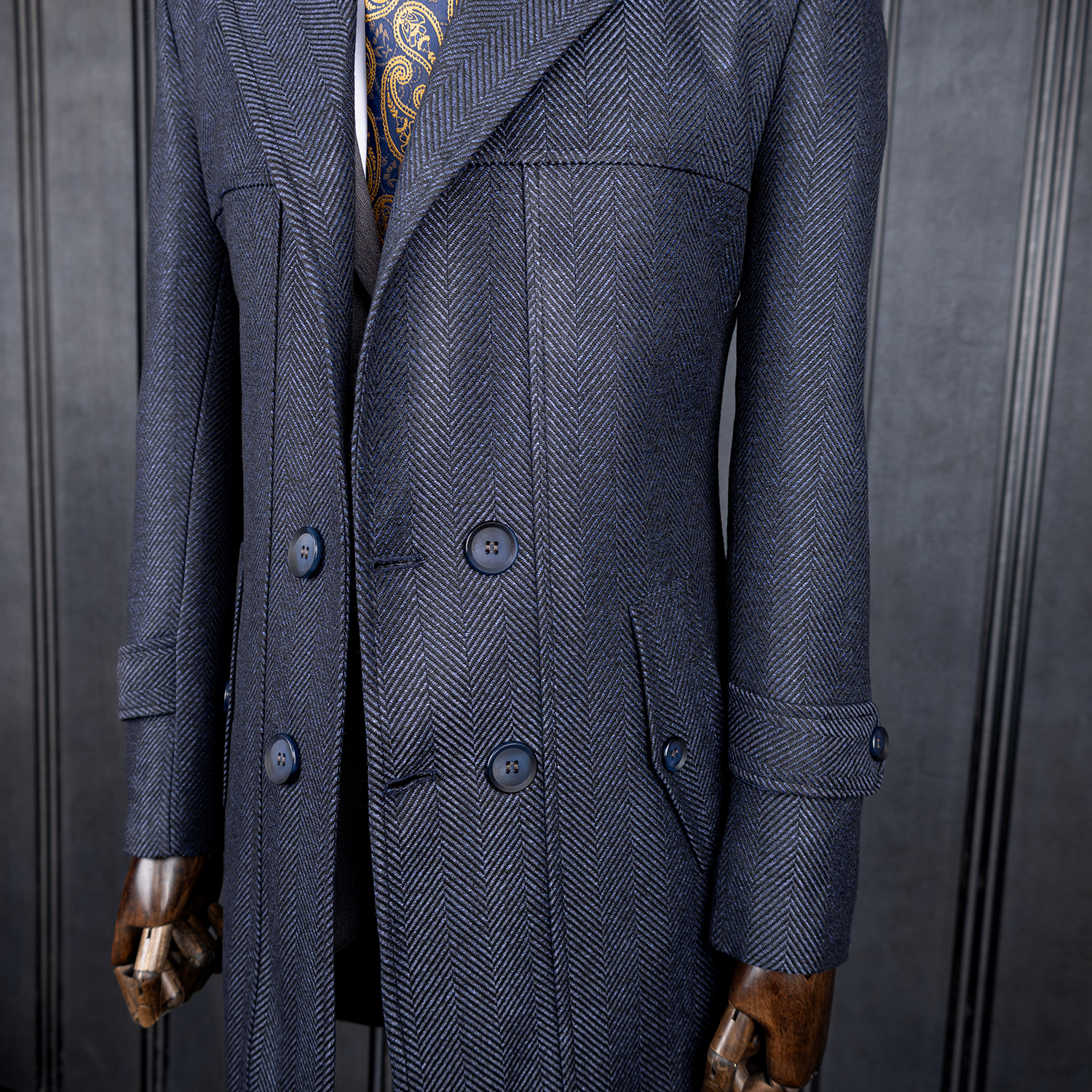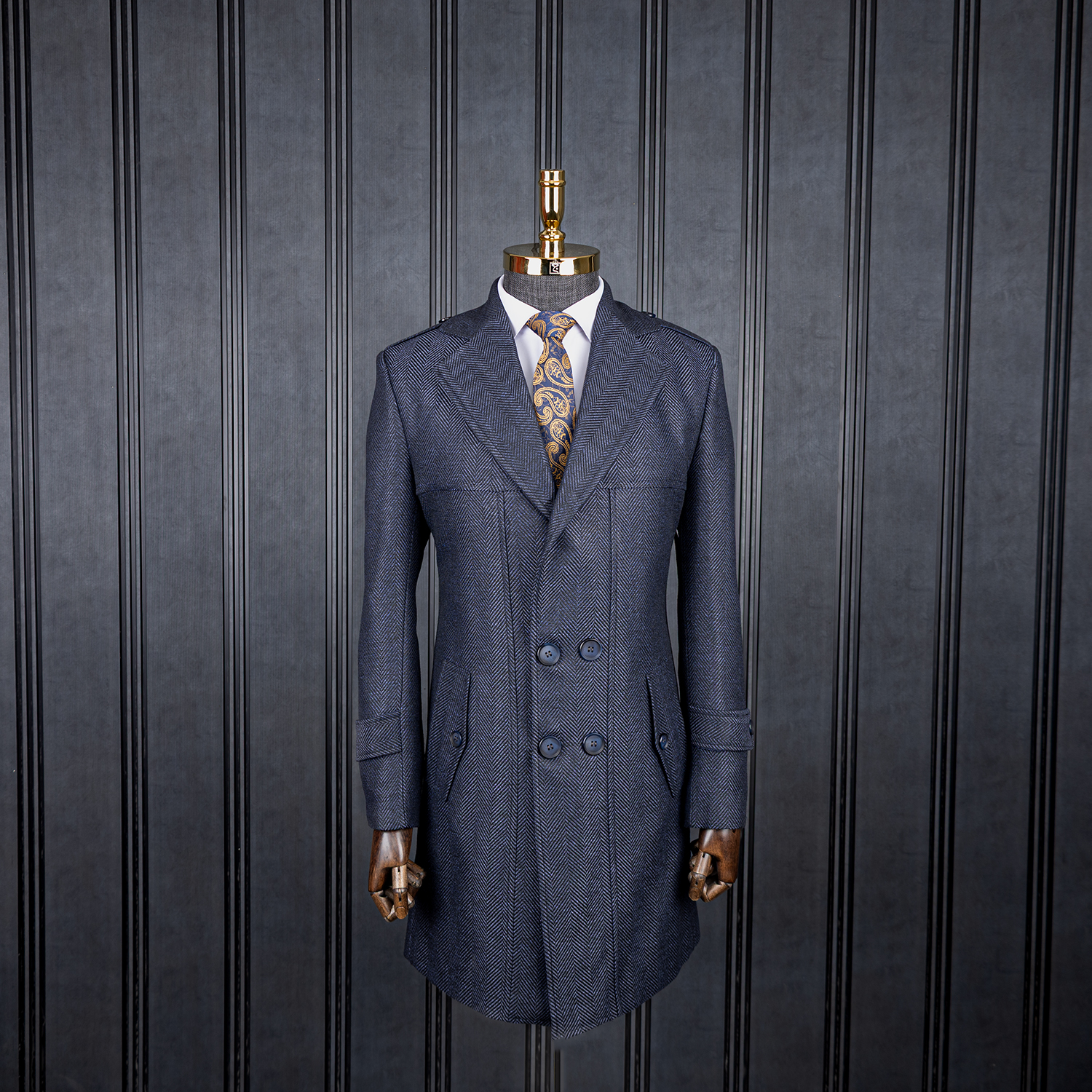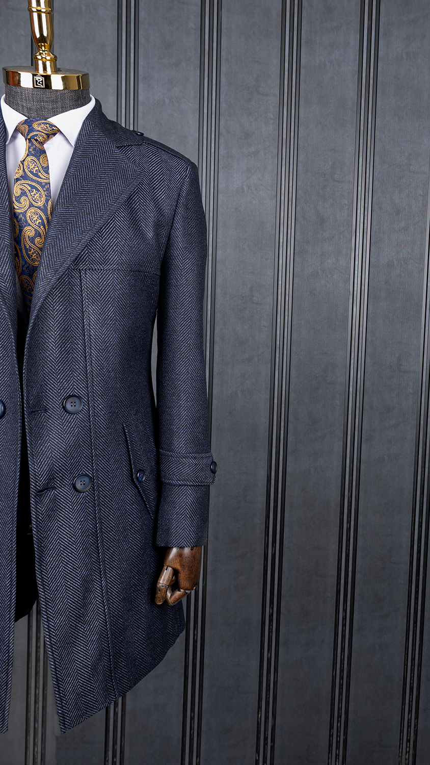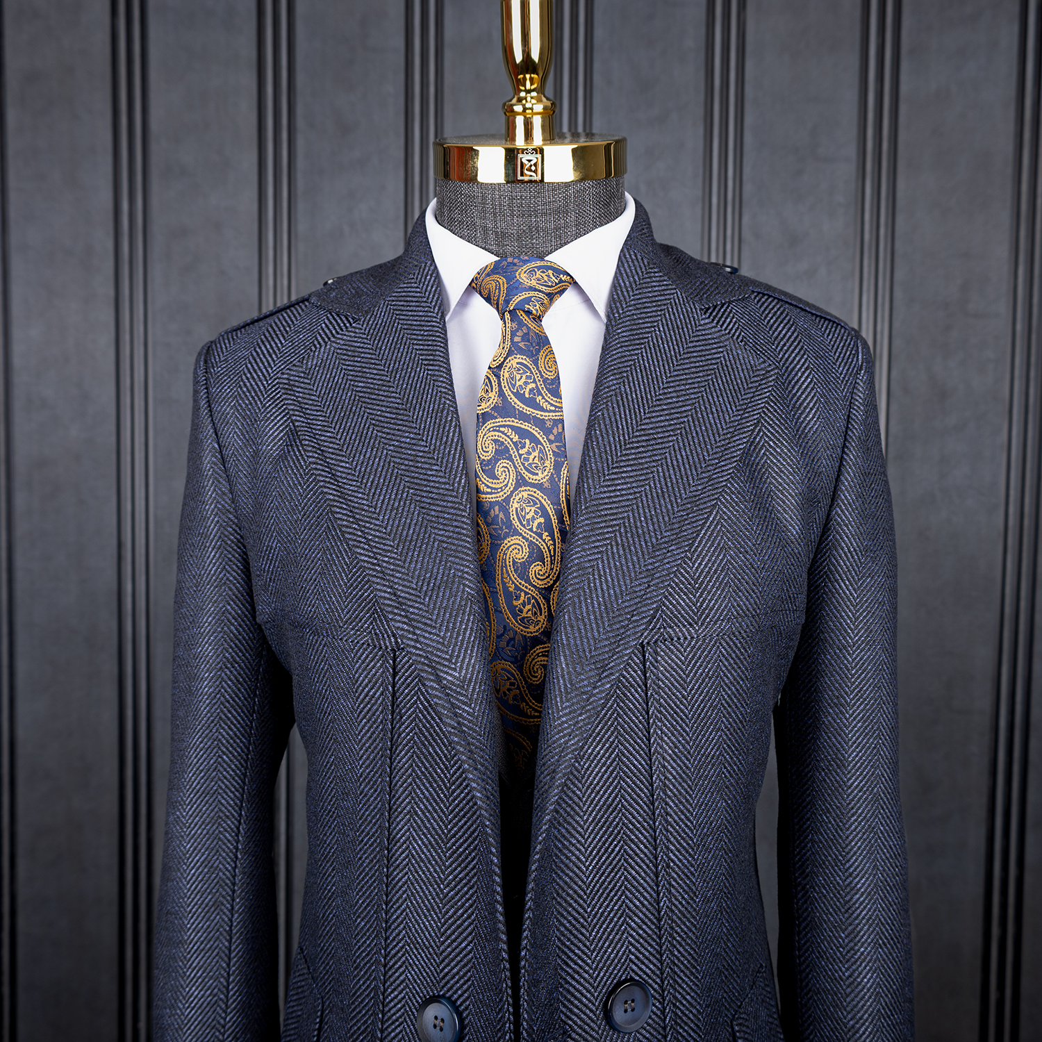 ویژگیهای پالتو مردانه سرمهای جناقی چهار دکمه