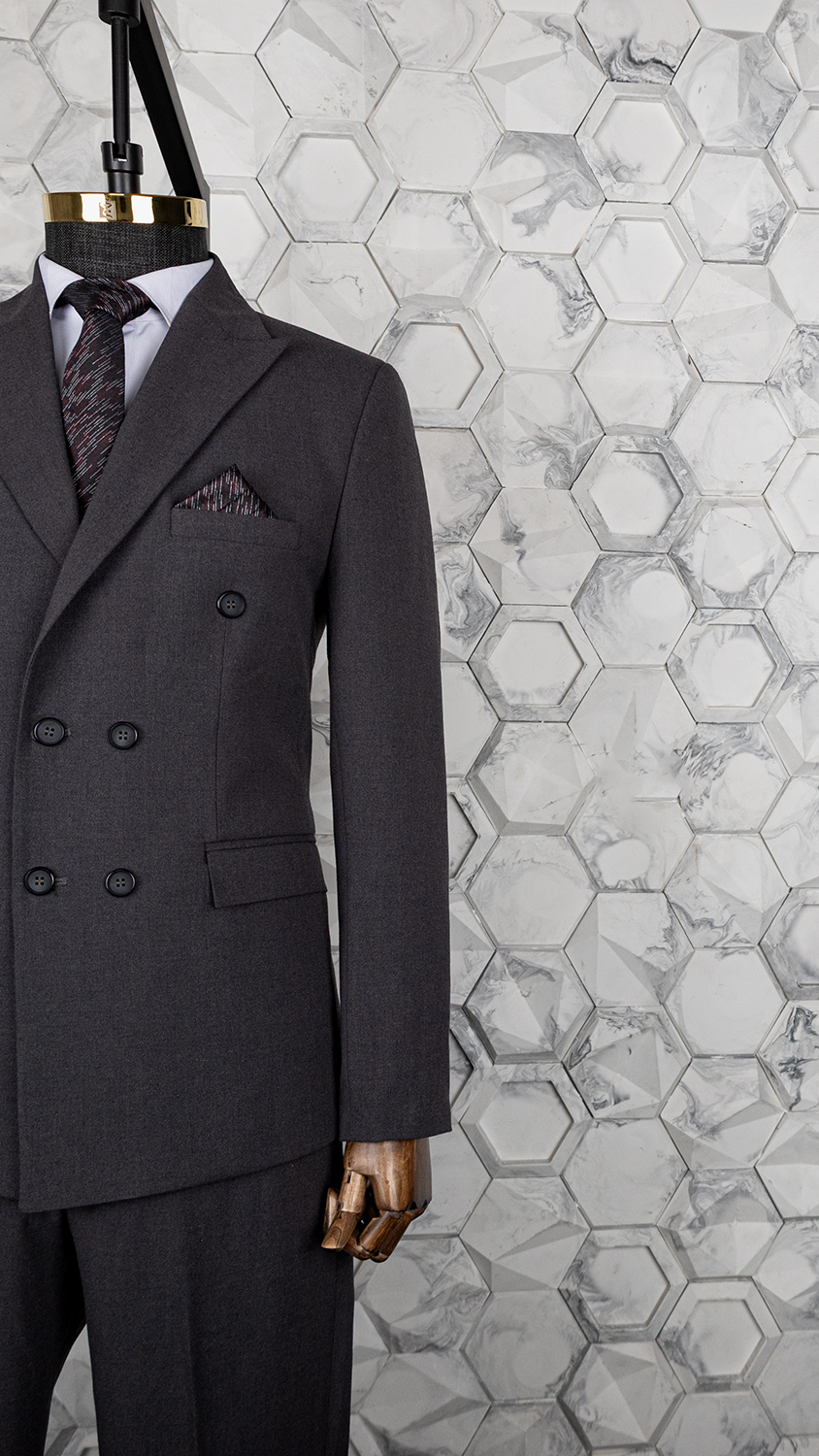 کت و شلوار ذغالی دبل برست؛ وقارِ بی‌سروصدا برای مردان دقیق