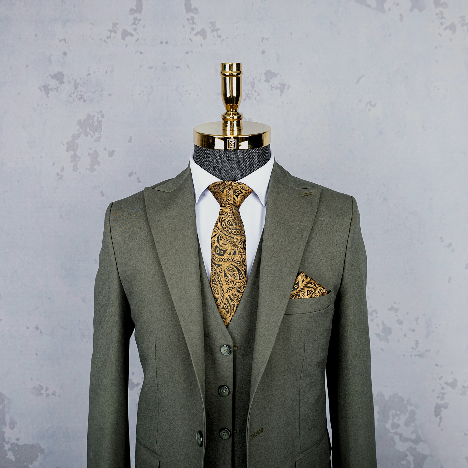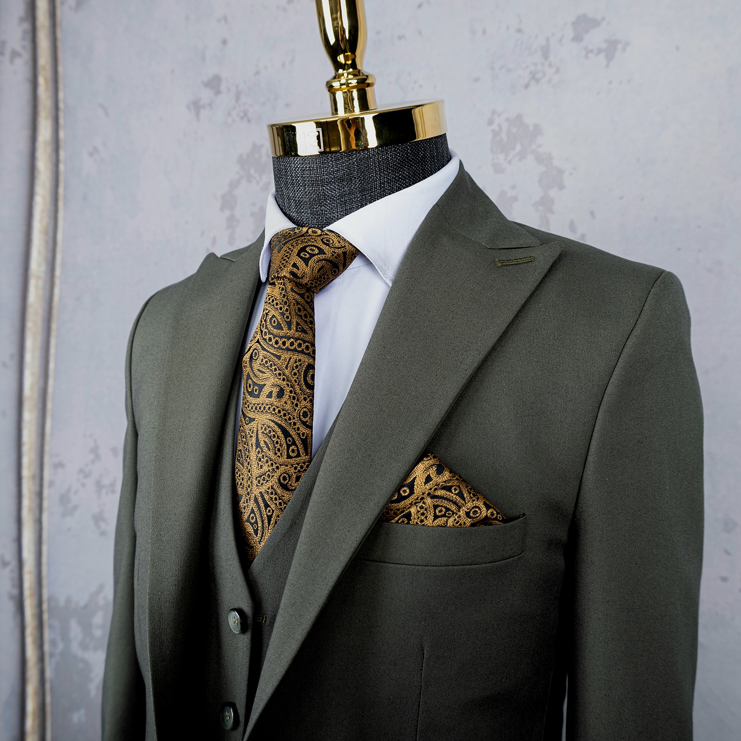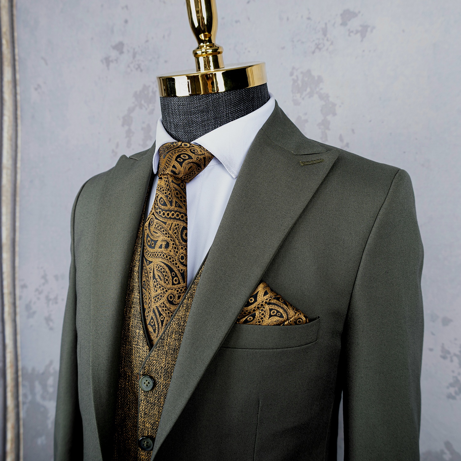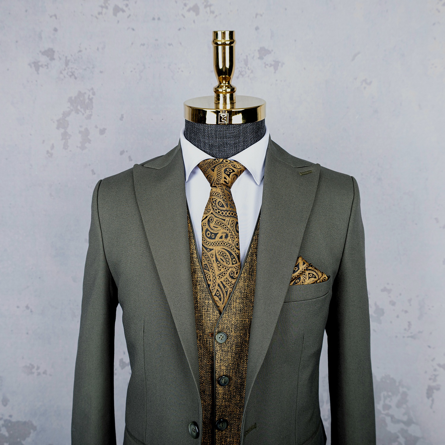 کت و شلوار سبز بزیاق با جلیقه دو رو