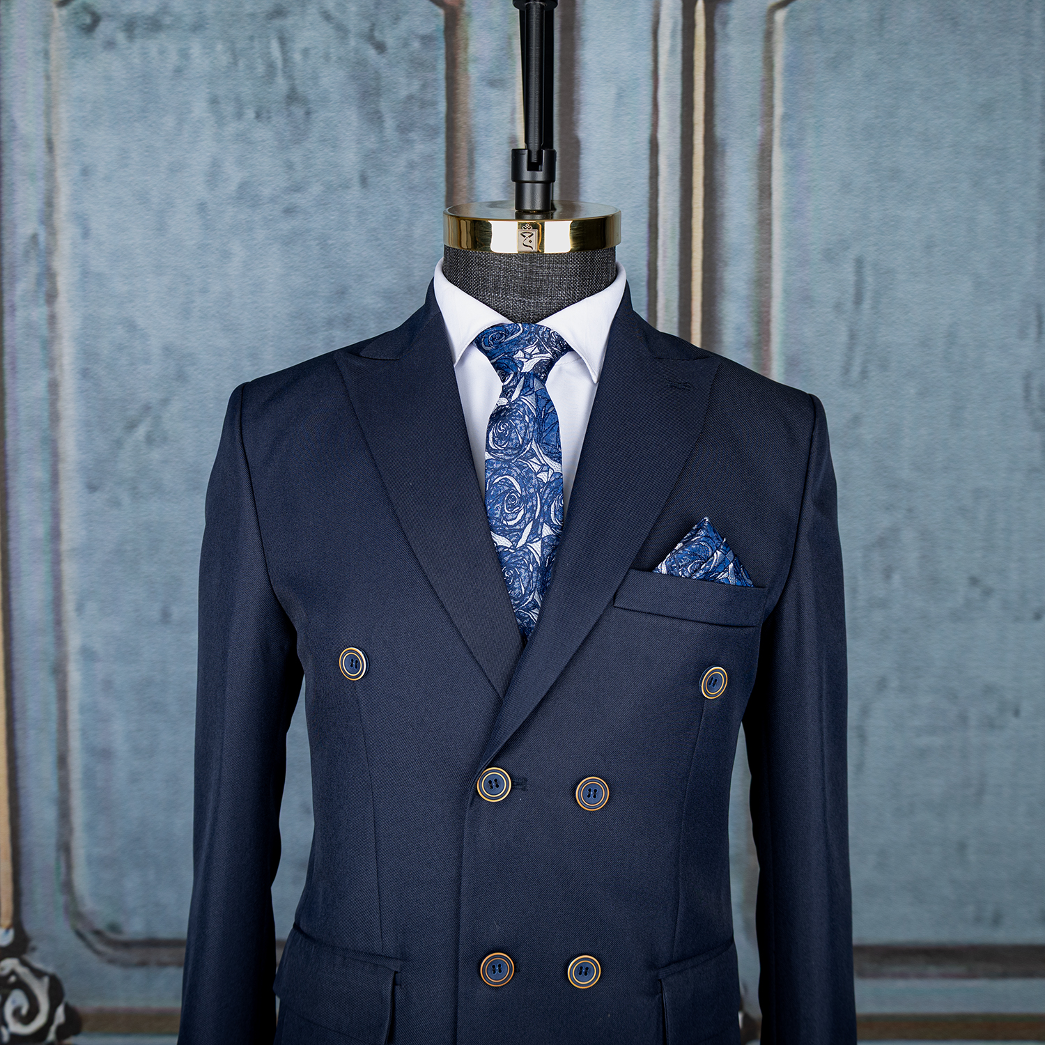 کت و شلوار سرمه‌ای دبل‌برست فاستونی